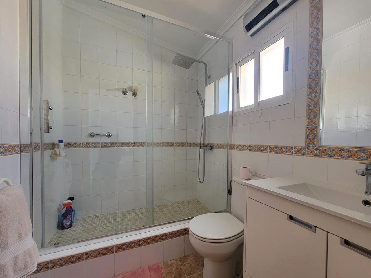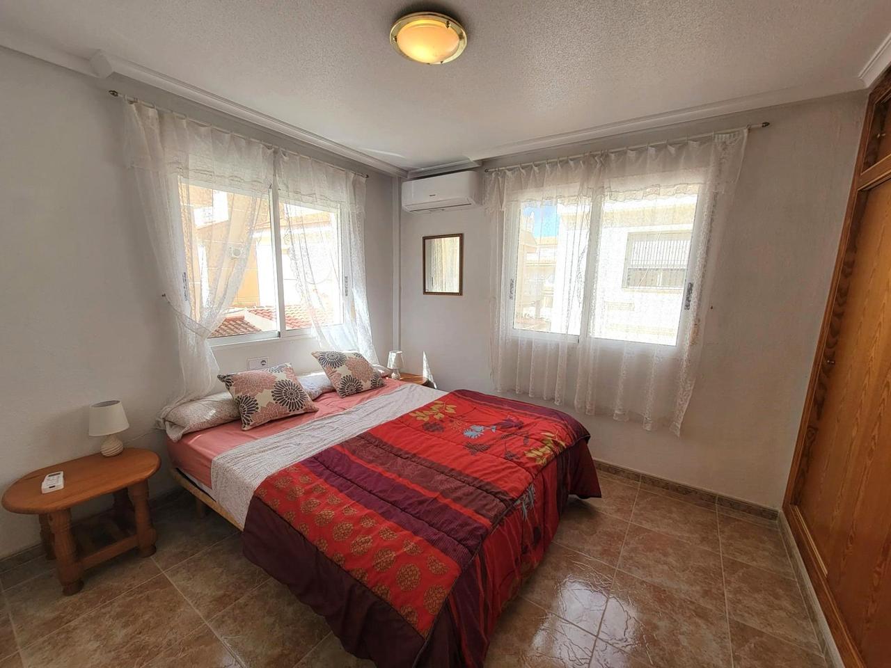 Three-story townhouse, South-facing, located in a quiet area of Torre de la Horadada, about a 10-minute walk from the beach! With a large front terrace, the ground floor consists of a glazed terrace converted into a Summer lounge, a large living-dining room with a fireplace, a fully equipped independent kitchen, a double bedroom with access to the terrace, a bathroom (with shower), a laundry room and a pantry for storage. The first floor consists of two double bedrooms with access to the large terrace and a bathroom (with bathtub). The second floor consists of a large double bedroom with access to another large terrace with clear views and an en-suite bathroom (with shower). Furnished. Air conditioning in the living room and bedrooms. Built-in wardrobes in the bedrooms. Pergola on the terrace. Mains gas. In good condition. Easy parking in the street near the house. NO community fees! All located in a pleasant area, close to all amenities, parks, cafes, restaurants, supermarkets and about a 10-minute walk from the beach!