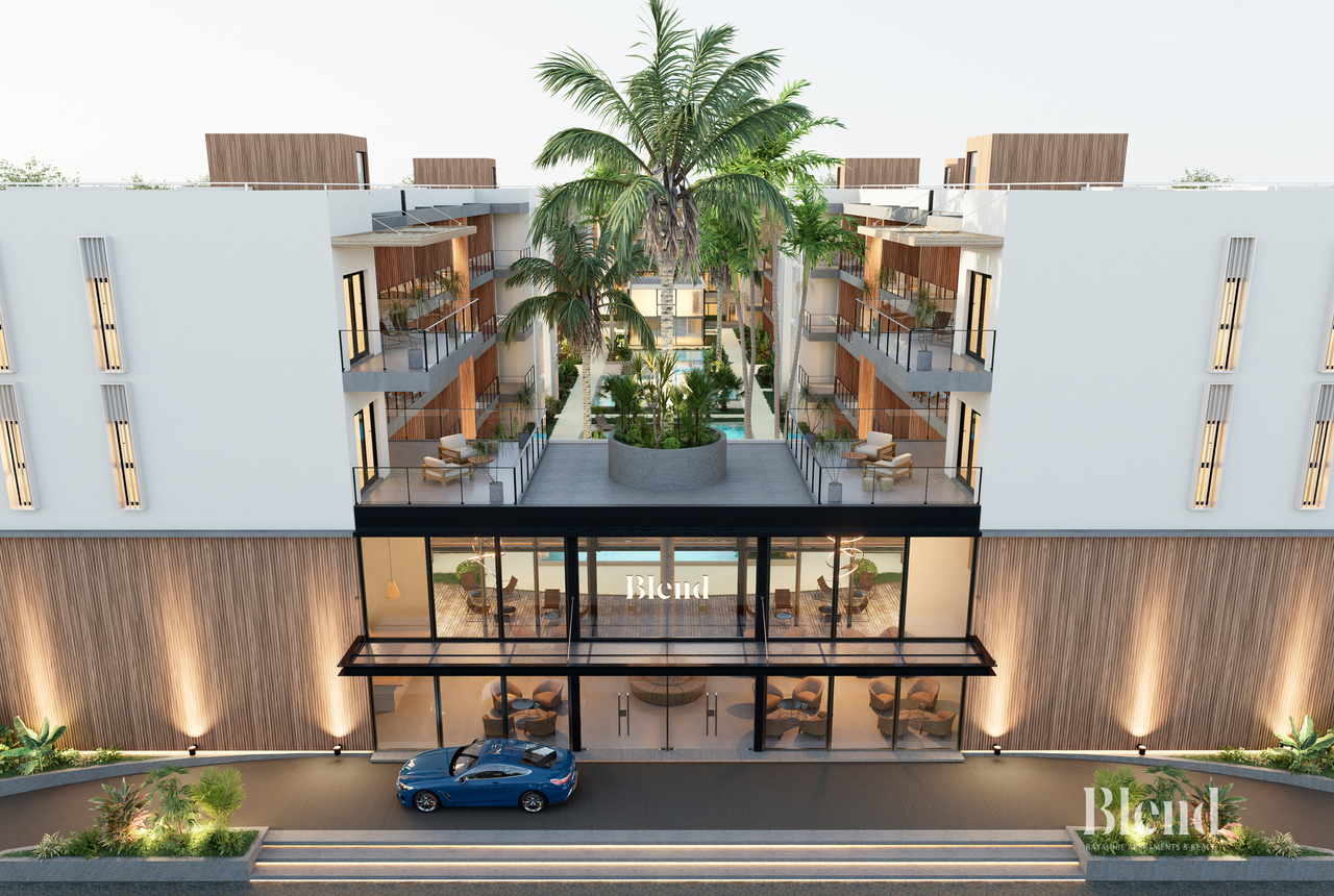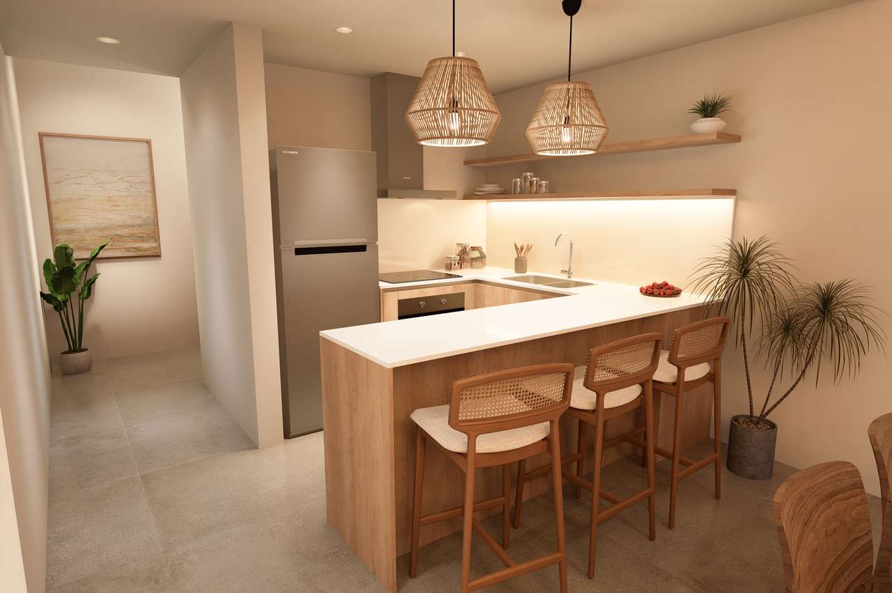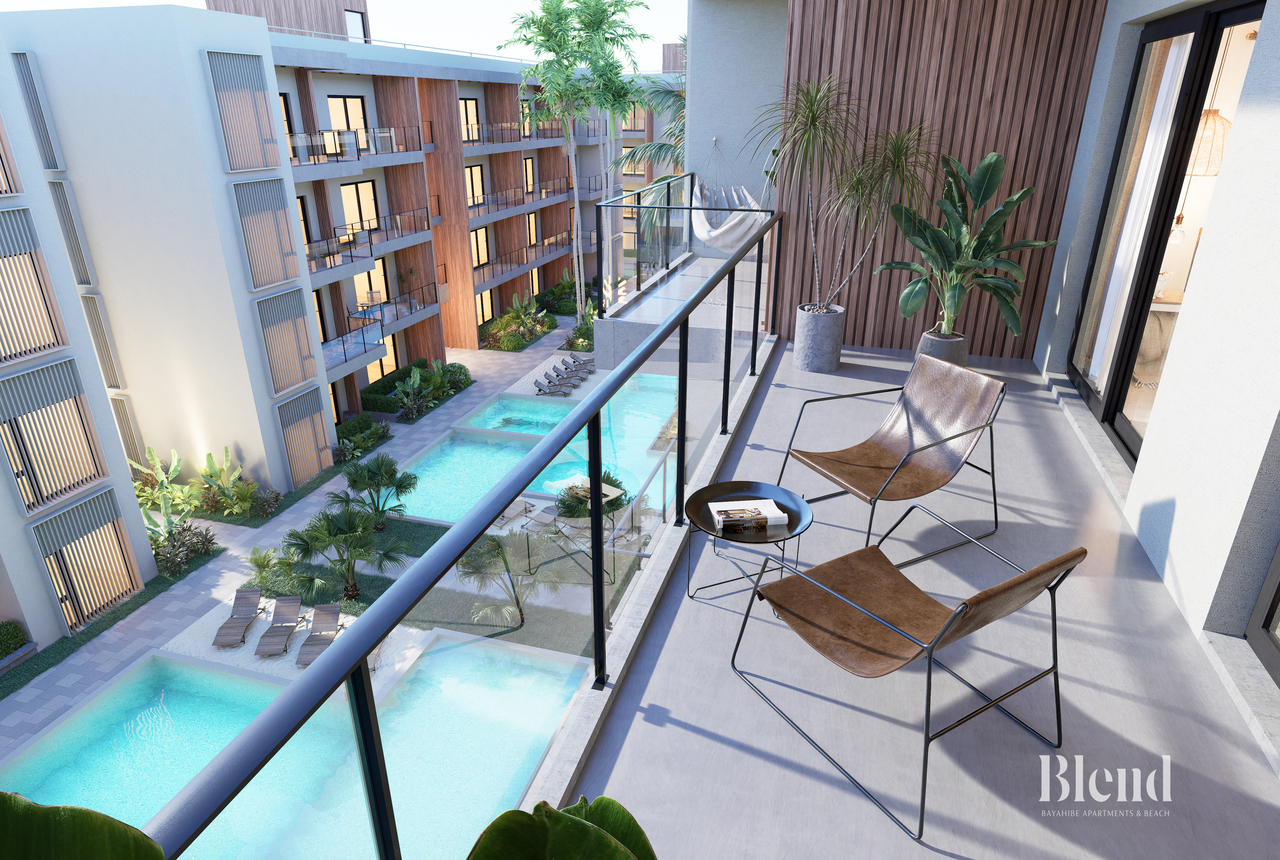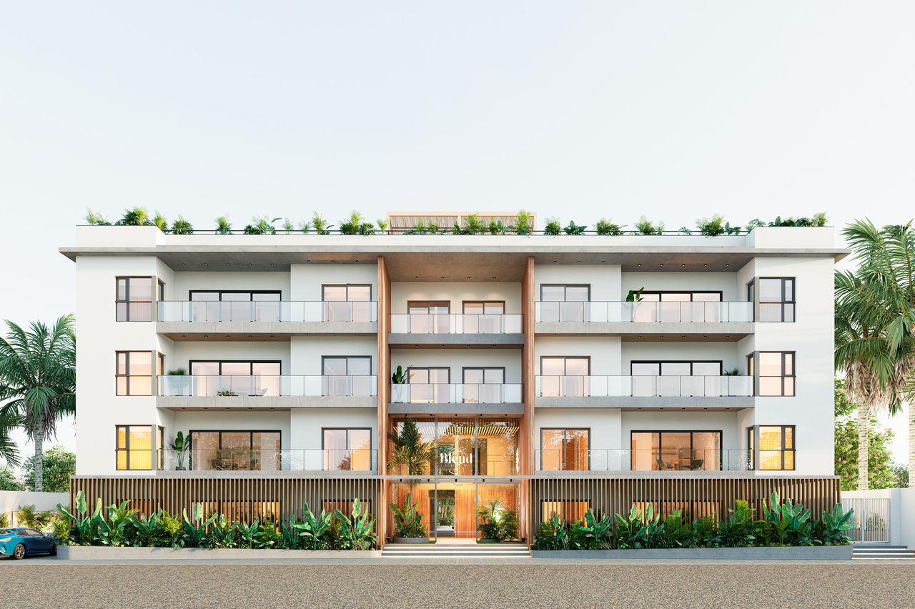 Contemporary design and efficient layout come together in these two-bedroom apartments with en-suite bathrooms, integrated kitchen, living room, and balcony. Spacious and naturally lit environments that invite you to enjoy comfortably or project a stylish investment in the heart of the Caribbean.