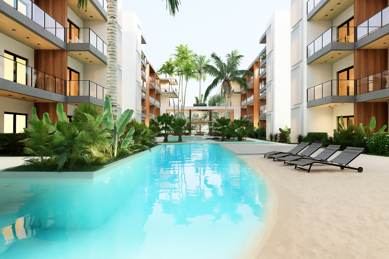 Brand new exclusive luxury resort in Bayahibe, Dominican Republic offering apartments with 1- and 2-bedrooms surrounded by green gardens and swimming pools, and within walking distance to the beach.