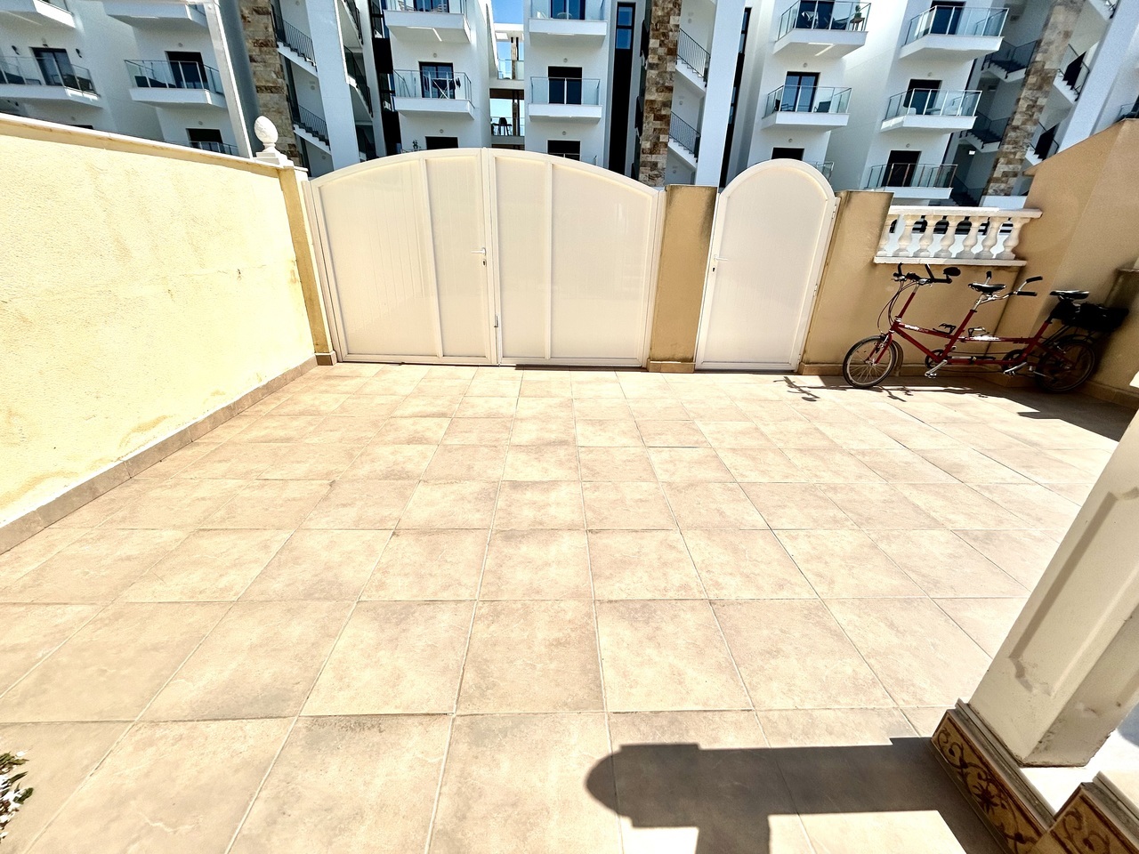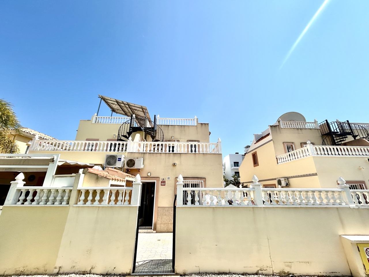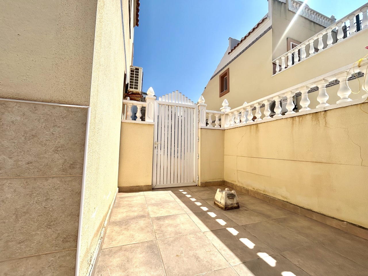 Discover this charming 3-bedroom, 2-bathroom semi-detached townhouse ideally located within walking distance of La Zenia Boulevard, offering the perfect blend of convenience, comfort, and Mediterranean outdoor living.At the front of the property, a sun-drenched private garden provides ample space not only for relaxing but also for secure off-road parking. To the rear, a spacious terrace opens directly onto the beautifully maintained communal pool area, creating a seamless indoor-outdoor lifestyle perfect for entertaining, sunbathing, or enjoying family time.The ground floor features a bright and welcoming living and dining area, a fully equipped kitchen, and a convenient double bedroom, ideal for guests or single-level living.Upstairs, you’ll find two generous bedrooms, each with its own private terrace, offering peaceful spots to enjoy morning coffee or evening sunsets. One of the terraces provides access to a private solarium, delivering additional outdoor space and panoramic views—perfect for soaking up the year-round sunshine. A well-appointed bathroom serves this level.Whether you’re searching for a permanent residence, holiday retreat, or investment property, this home offers an unbeatable location, fantastic outdoor spaces, and direct access to communal amenities—all just moments from shops, restaurants, and beaches.