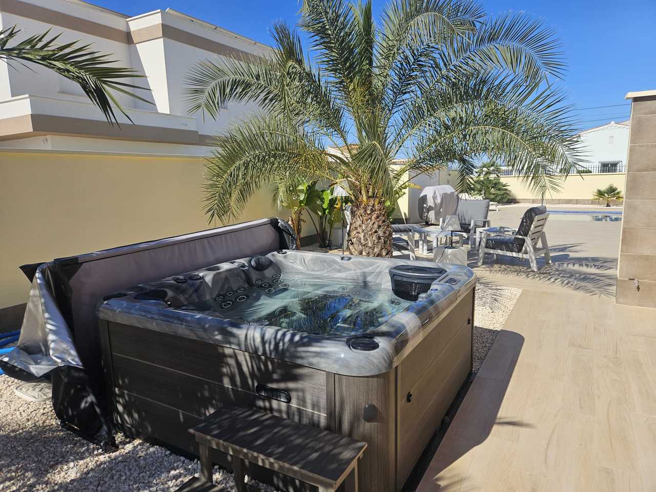 Outside there are two large terraces with a large swimming pool (10×4,5), next to which is a jacuzzi and an outdoor shower with hot water.