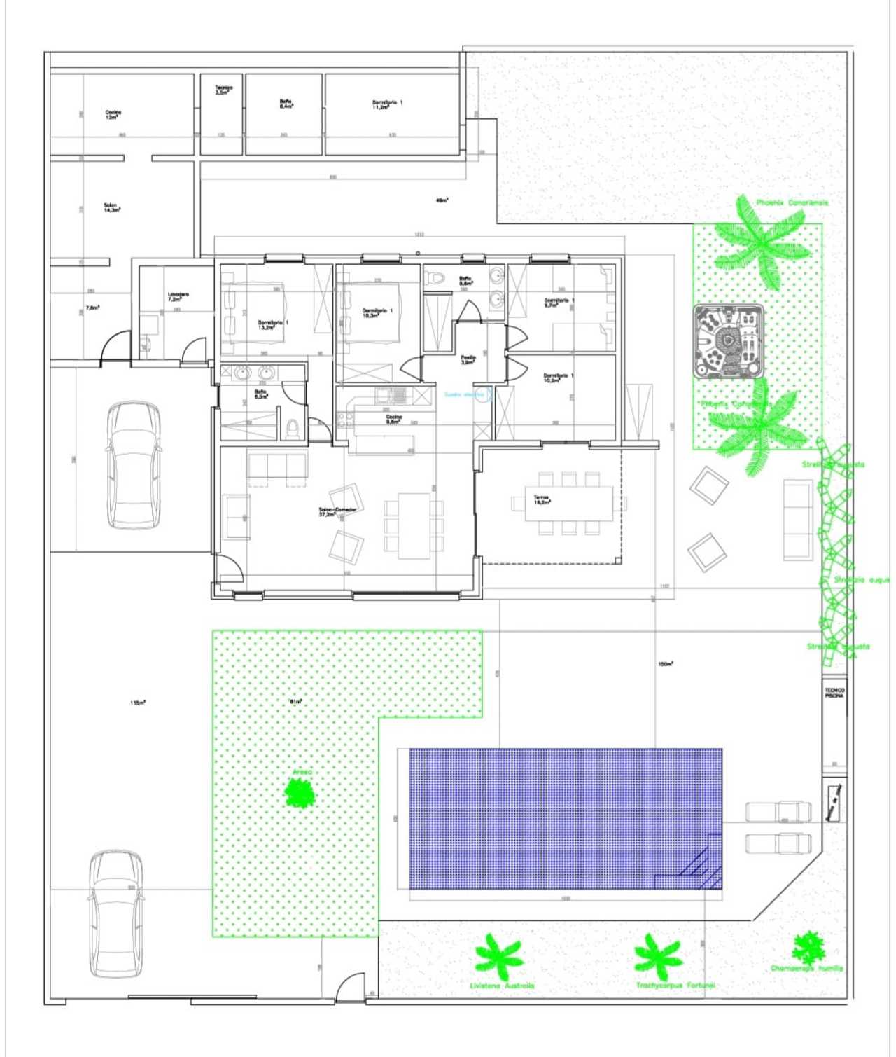There is also a large porch to park a car out of the sun, an alarm system inside the house but also on the outside. Also CCTV system and doorbell that is linked with your smartphone.