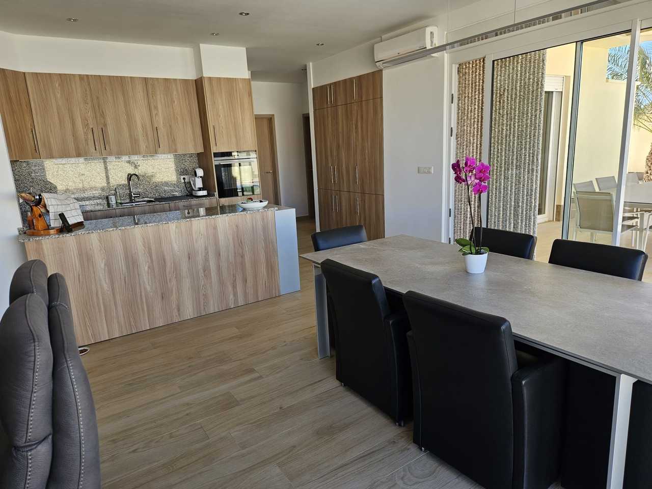 The main house has a living/dining room with an open plan fully equipped kitchen with a dishwasher, oven, Siemens induction hob and large refrigerator. The kitchen is right next to a large 150m² terrace. There are four bedrooms and two bathrooms.