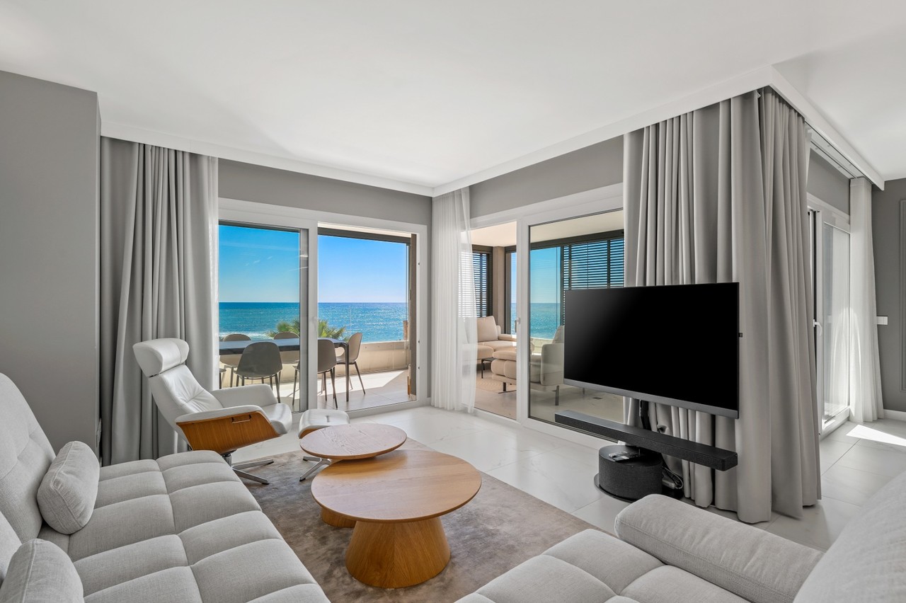 Always dreamed of a First Line Luxury Corner Penthouse located on a coveted luxury resort “Posidonia” in Punta Prima, Orihuela-Costa.This is your chance to become the proud owner of this gem in this beautiful Resort with more facilities than a hotel and of course this property is also ideal for rental, so you can make a nice return. Not to be forgotten, you can come yourself and use your humble abode whenever you want.This stunning property is fully equipped with all kinds of extras. This gem consists of 3 bedrooms and 2 bathrooms, one of which is en-suite. Naturally, all the spaces including the huge terrace that is accessible from nearly every room of the property here bring spectacular panoramic sea views and are located just 50 meters from Rocio del Mar beach.When entering the property, it is not only the spacious living space or the open modern kitchen that attracts your attention, but of course the large sliding windows where you are overwhelmed by the beautiful panoramic view over the sea where you can enjoy a beautiful spacious terrace with sun, sea and tranquility. You can also enjoy the yachts, sailing boats and the Jetsky’s that keep sailing past from the ports of the city of Torrevieja, a few km from the resort, and you can also see the beautiful city of Torrevieja from your terrace.The spacious master bedroom has a beautiful sea views with direct access to the spacious terrace, if this is not a dream to wake up every morning and be the first to see the sun shining from the sea. The en-suite bathroom has all the necessary luxury, a large walk-in shower with underfloor heating.The guest bedrooms also has the perfect size to fit a double bed and of course it comes included with large fitted wardrobes. The family bathroom consists of a large walk-in shower, toilet and sink and underfloor heating is also provided here.Resort:The state-of-the-art common area at this beautiful Resort includes:Three swimming pools (one heated for year-round use), loungers, children’s play area, children’s pool.Contact us for a (video) viewing.