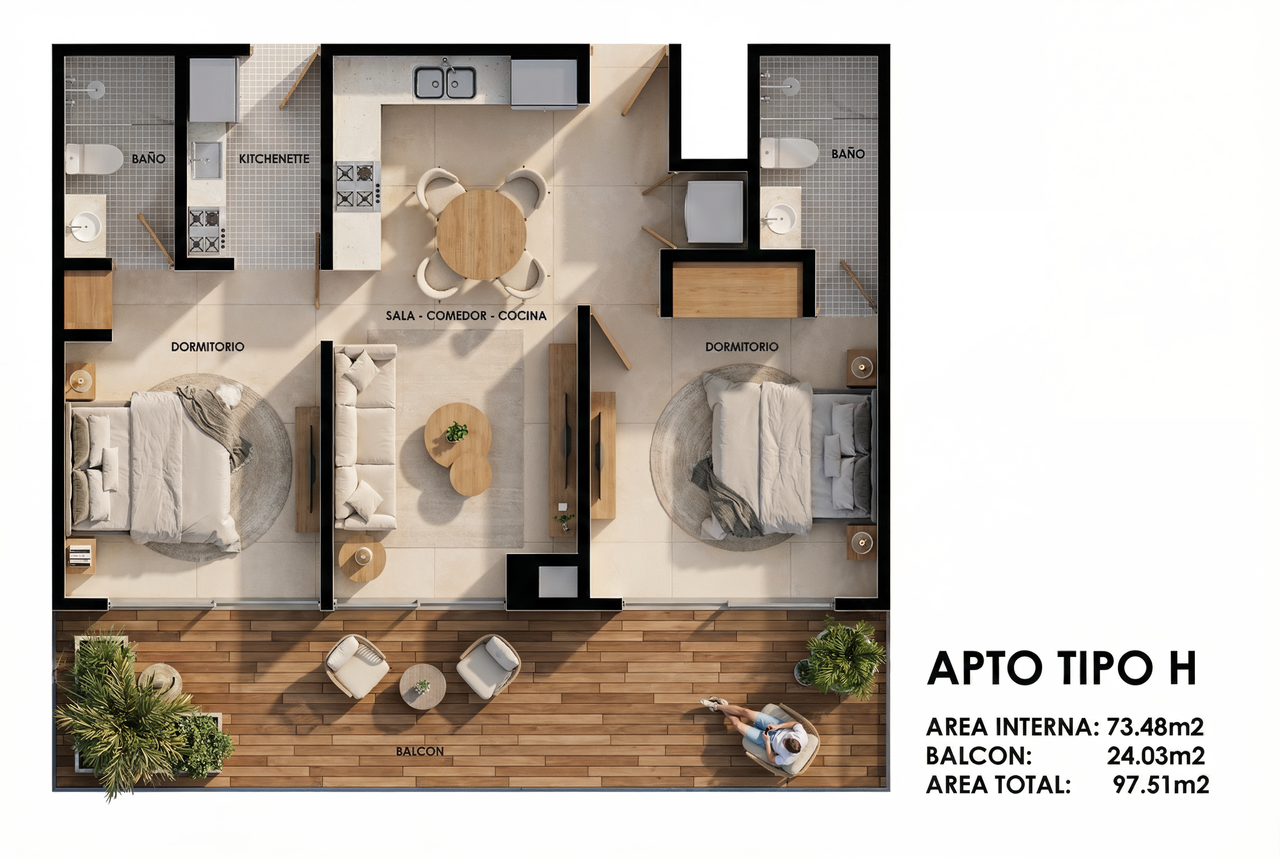 The perfect balance between functionality and style. Units with bedroom, full bathroom, equipped kitchen, and open concept living area. Includes a balcony with exclusive views, designed for comfortable living and enjoying the Caribbean environment. An ideal option combining quality of life with high vacation rental profitability.
