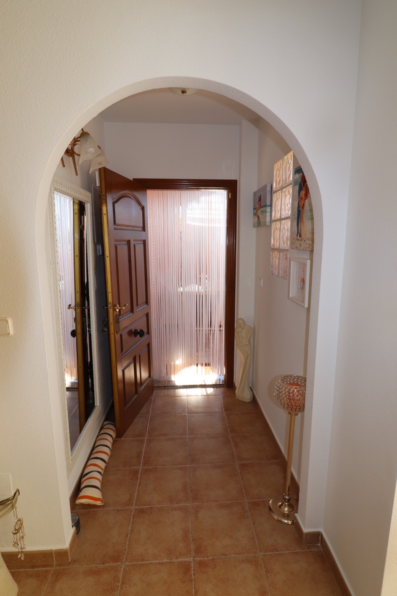 This beautiful semi detached house is located in a very quiet urbanization close to several restaurants, the famous thermal spa of Fortuna and less than 2 kms from the city with all amenities. The city of Murcia is 20 minutes away, beaches and airports 40 minutes. It is really superb, in excellent condition and has been decorated with great care and taste. A first terrace leads to a porch and the entrance of the house which consists of a spacious living room with a lounge area, a dining area and an open kitchen as well as 2 bedrooms with fitted mirrored wardrobes and 2 bathrooms including one ensuite. The big plus of this house is the fantastic solarium (70m2) with lovely mountain views, sunny all day, very private and not overlooked. There is also a small storage cupboard in which the washing machine and the electric water heater are located. This house has all the modern comforts: water, electricity, optical fiber for internet, connected to the drainage network, reversible air conditioning hot cold, double glazing, shutters, mosquito screens at all windows. The house will be sold with white goods. Moreover, the magnificent community pool is a hundred meters away. You really need to see it to realize all its amenities.