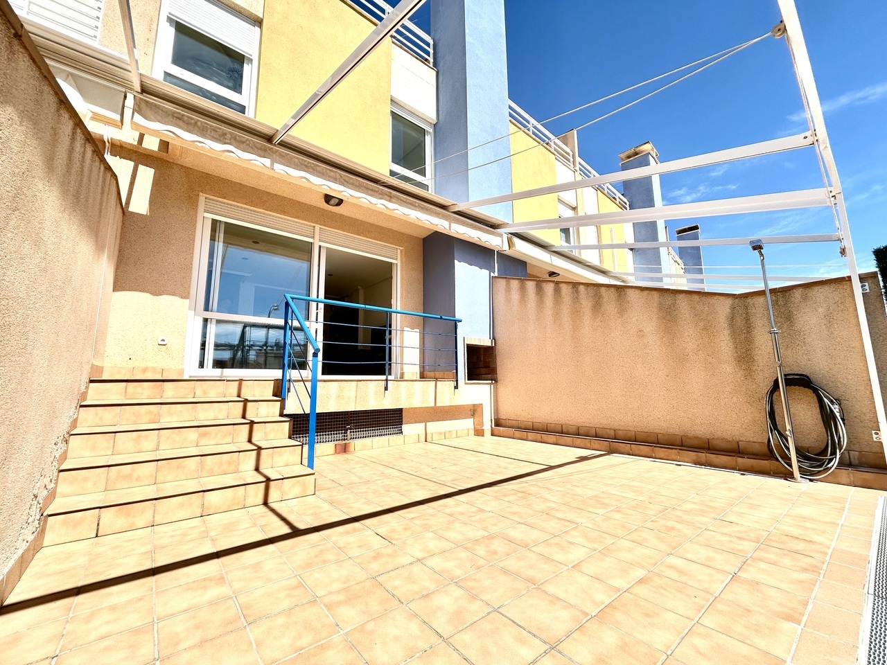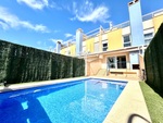 Rare opportunity to purchase this spectacular property in Calas de Campoamor with open sea views, just 100m from the beach. This 3 bedroom, 3 bathroom villa boasts a heated saline swimming pool installed less than 2 years ago along with a private solarium and underground garage and storage room. Located in a gated complex this property has been maintained to a very high standard with a sleek brand new kitchen and very attractive marble flooring throughout. On the ground floor there is fantastic living and dining room with floor to ceiling patio doors leading outside the the tiled terrace and swimming pool which has been finished with artificial grass. On the first floor you with find the master bedroom that enjoys sea views and en-suite bathroom along with two double guest bedrooms and the family bathroom all with views towards the sea or the communal swimming pool. On the top floor you will find the fabulous solarium with more stunning views of the Mediterranean and down towards the Mar Menor. The villa has an underground garage and storage accessed via an internal staircase, where you can conveniently access your car and exit the complex via electric doors. The house forms part of a well maintained complex where home owners also have use of the huge communal swimming pool and pretty garden. The property is sold as seen, fully furnished with many, many extras including independent laundry room, new air-conditioning units in the bedrooms, brand new kitchen appliances, non-chemical saline heated pool system, automated garage doors, intercom entry system, open fireplace in the living room and purpose built barbecue on the main terrace.Calas de Campoamor is a sought after location with all amenities within a few minutes walking distance including an international supermarket and bakery, 24hr pharmacy and medical centre along with a vast array of restaurants, cocktail and tapas bars.