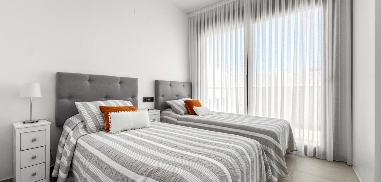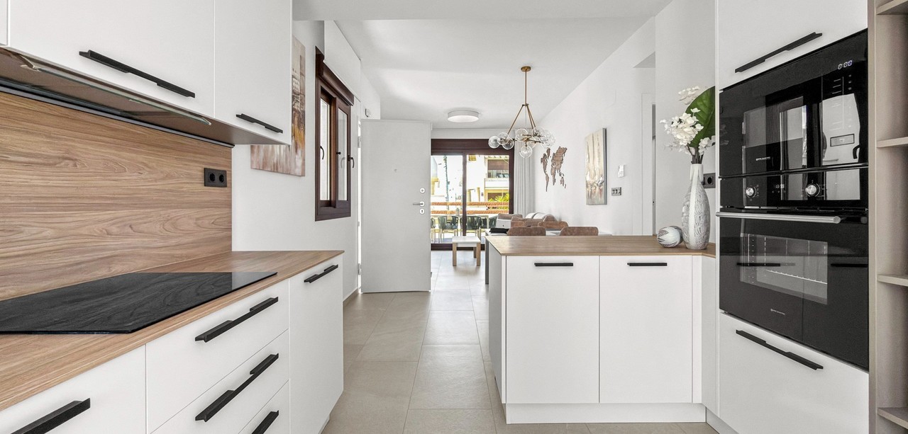 Discover this key-ready 2-bedroom ground floor apartment in Los Balcones, perfectly positioned with direct access to beautiful gardens and two semi-Olympic pools. This bright, modern home offers spacious open-plan living, 2 stylish bathrooms with underfloor heating, and fully furnished interiors with high-end finishes throughout. Enjoy sun all day with two private terraces – a southwest-facing front terrace leading straight to the pool, and a peaceful southeast rear terrace for morning coffee. Built as the show home by Amay, the property includes premium upgrades such as a designer Italian kitchen, powerful air conditioning, electric shutters, alarm system, and private underground parking with storage. Located just minutes from beaches, golf courses, and La Zenia Boulevard, this is the perfect holiday home, investment, or permanent residence on the Costa Blanca. Ready to move in – just bring your suitcase.