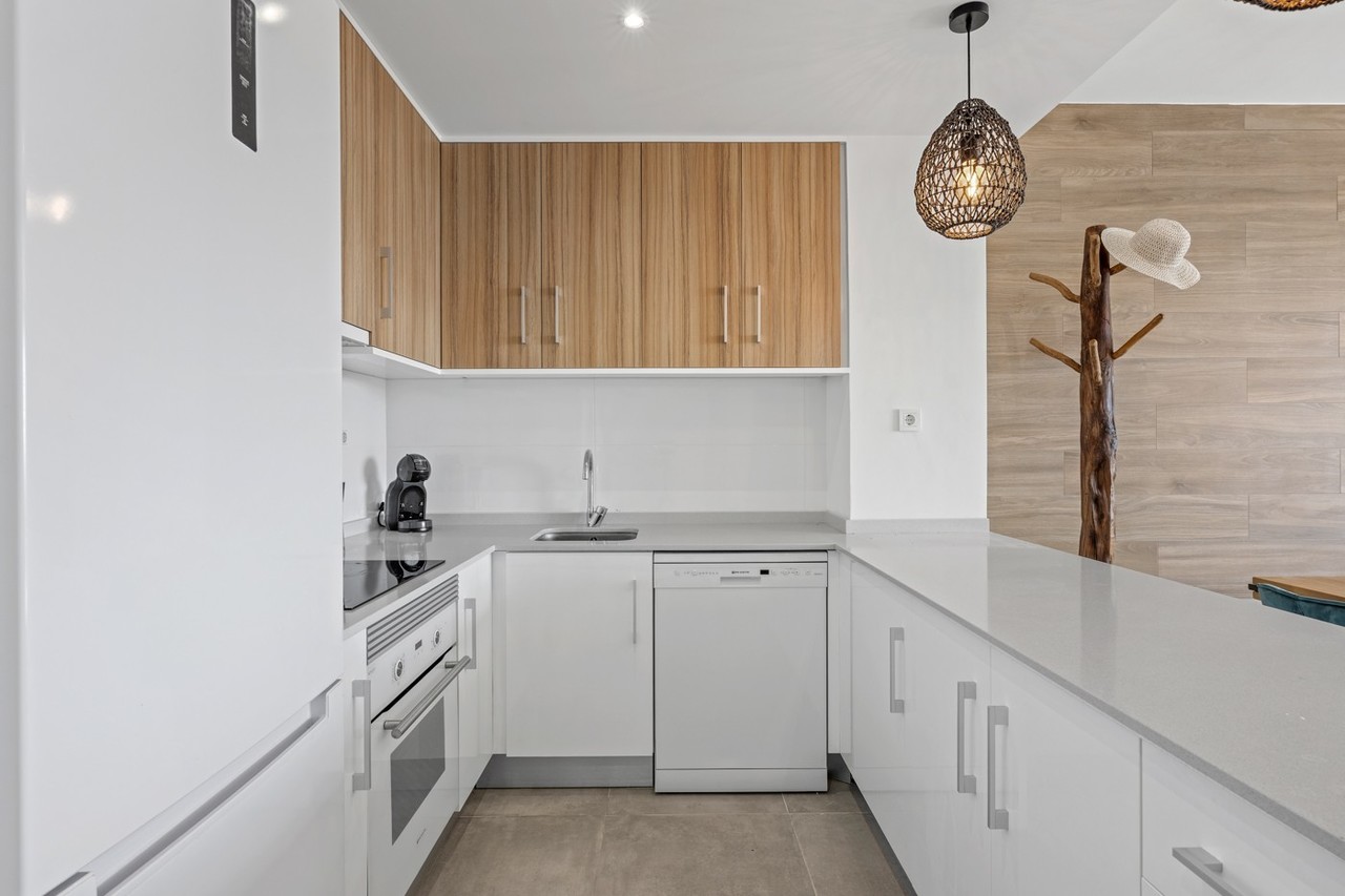 Discover this beautiful penthouse in a recent new-build development located in the sought-after area of Campoamor, Orihuela Costa, specifically close to Villamartín. This privileged location is surrounded by three excellent golf courses (Villamartín, Las Ramblas and Campoamor) and offers stunning distant sea views, while shops, restaurants and all amenities are within walking distance. The penthouse enjoys sunshine all day long and features a very spacious terrace, ideal for making the most of outdoor living and the views. In addition, there is a private solarium where you can relax in peace with panoramic views, even of the sea. The property is sold fully furnished and finished to high quality standards, including air conditioning and underfloor heating in the bathrooms. It also includes a private underground parking space and a practical storage room. The residential complex offers a beautiful communal garden with palm trees and various plants, as well as a swimming pool and jacuzzi—perfect for relaxing in a pleasant and green environment. Thanks to its excellent location, you are only 10 minutes away from the beautiful beaches of Campoamor and Cabo Roig, and close to the popular Zenia Boulevard shopping centre. Alicante and Murcia airports are easily accessible within approximately 45 minutes. This penthouse is the ideal investment, both for holidays and permanent living, where comfort, luxury and location come together perfectly.