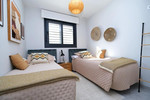 Stunning modern Apartment in Villamartín area, 2 bed 1 bath, terrace with pool views, underground parking – Ready to move in ! Positioned within one of Villamartín’s most desirable residential communities, this exceptional first-floor apartment, completed in 2023, embodies modern elegance, comfort, and refined Mediterranean living. From the moment you enter through the reinforced security door, you are welcomed into a beautifully curated interior where clean architectural lines meet premium finishes and bespoke designer furnishings. The open-concept living space is both bright and inviting, seamlessly integrating a fully fitted American-style kitchen with a stylish dining and lounge area—perfectly designed for both relaxation and entertaining. Floor-to-ceiling sliding doors open onto a private east-facing terrace, bathed in gentle morning and midday sunlight. From here, enjoy tranquil open views across the impeccably landscaped gardens and the elegant communal pool, creating a serene and exclusive atmosphere. The apartment offers two generously proportioned bedrooms, each featuring built-in wardrobes and a calming, contemporary aesthetic. The master suite enjoys direct access to a beautifully appointed bathroom with a walk-in shower, thoughtfully designed with dual access from both the bedroom and the living area—combining luxury with practicality. Every detail of this residence reflects quality and comfort. The property is offered fully furnished with high-end designer pieces, allowing for an effortless, turnkey experience. Integrated ducted air conditioning (hot and cold) ensures year-round climate control, while the building provides lift access throughout, including to the secure underground garage with a private parking space. Set within an exclusive gated community, residents benefit from exceptional amenities including lush landscaped gardens, a stunning swimming pool for adults and children, a heated jacuzzi, and pétanque courts—all designed to enhance a relaxed yet sophisticated lifestyle. Despite its peaceful and private setting, the apartment is ideally located just a short stroll from the vibrant Villamartín Plaza and La Fuente Commercial Centre, offering a fine selection of restaurants, cafés, and amenities. World-class golf courses—Villamartín, Campoamor, Las Ramblas, and Las Colinas—are only minutes away, while the pristine blue flag beaches of Orihuela Costa and the renowned Zenia Boulevard shopping destination are within a 10-minute drive. Both Alicante and Corvera airports are conveniently accessible in approximately 45 minutes. A truly exceptional property offering style, comfort, and prime location—perfect as a distinguished holiday retreat, investment, or permanent residence. Early viewing is highly recommended.